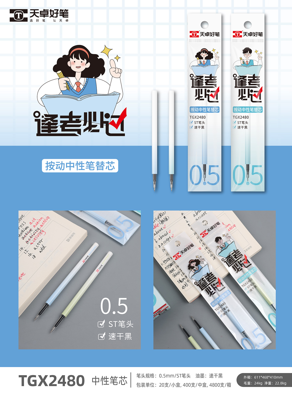 TGX2402 小清新主题 中性笔芯