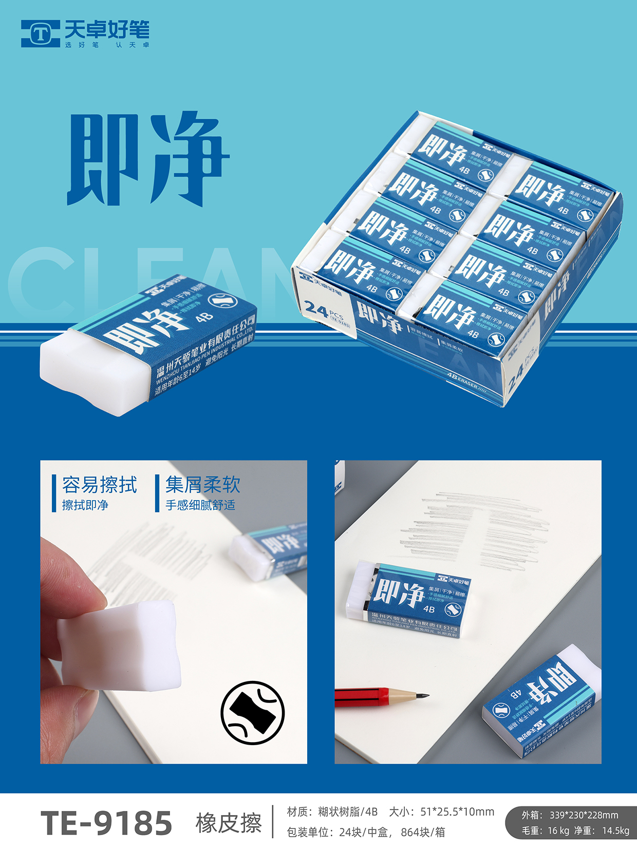 TE-9185橡皮擦 擦干净大