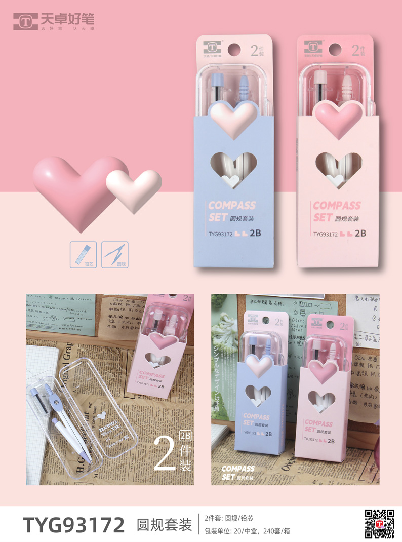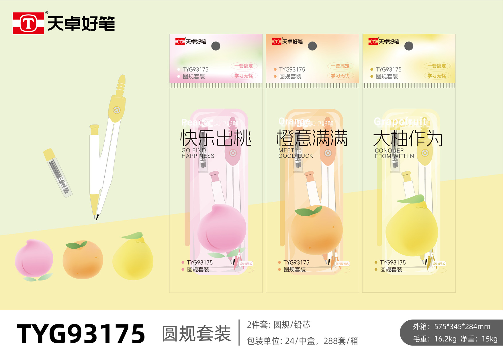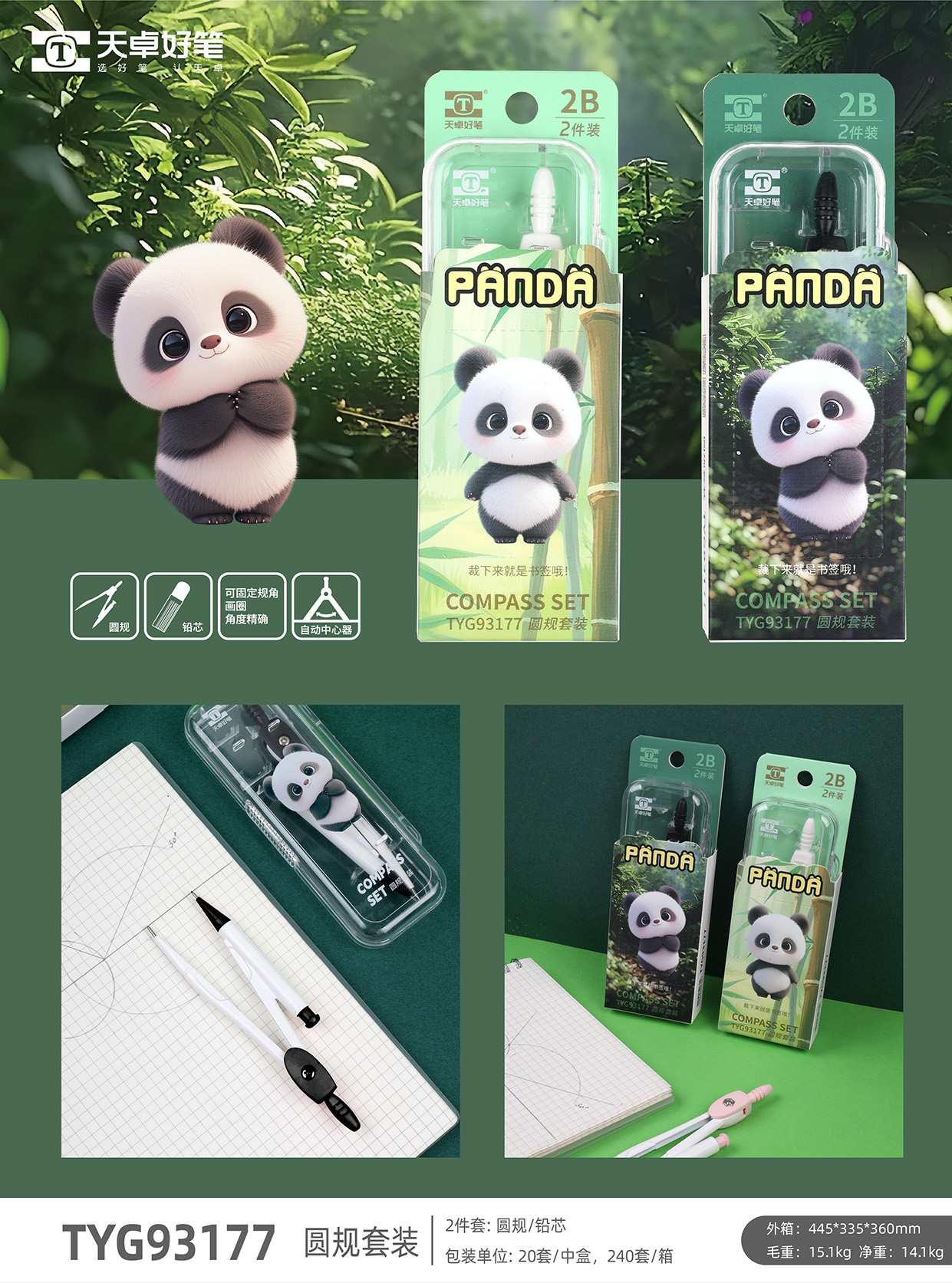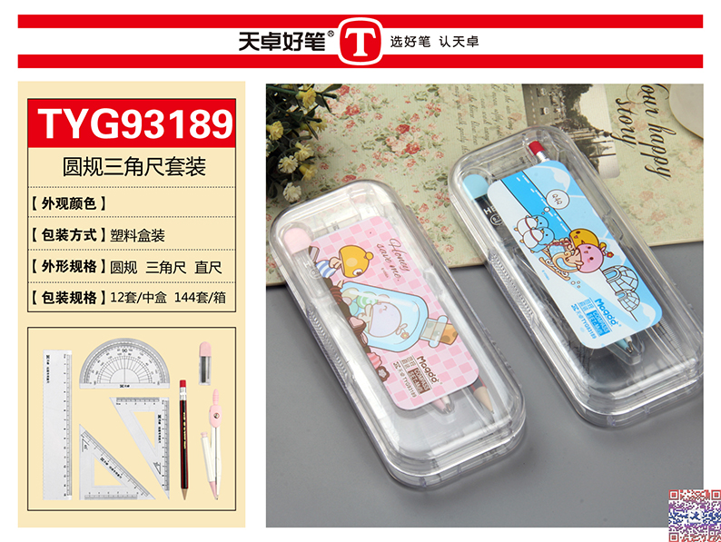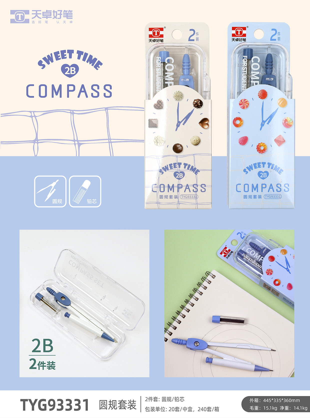 TYG93233天卓 团子家族 系列 圆规大套装,圆规、三角尺、橡皮擦、活动铅笔、铅芯,海洋团子卡通。