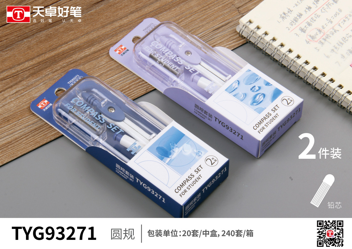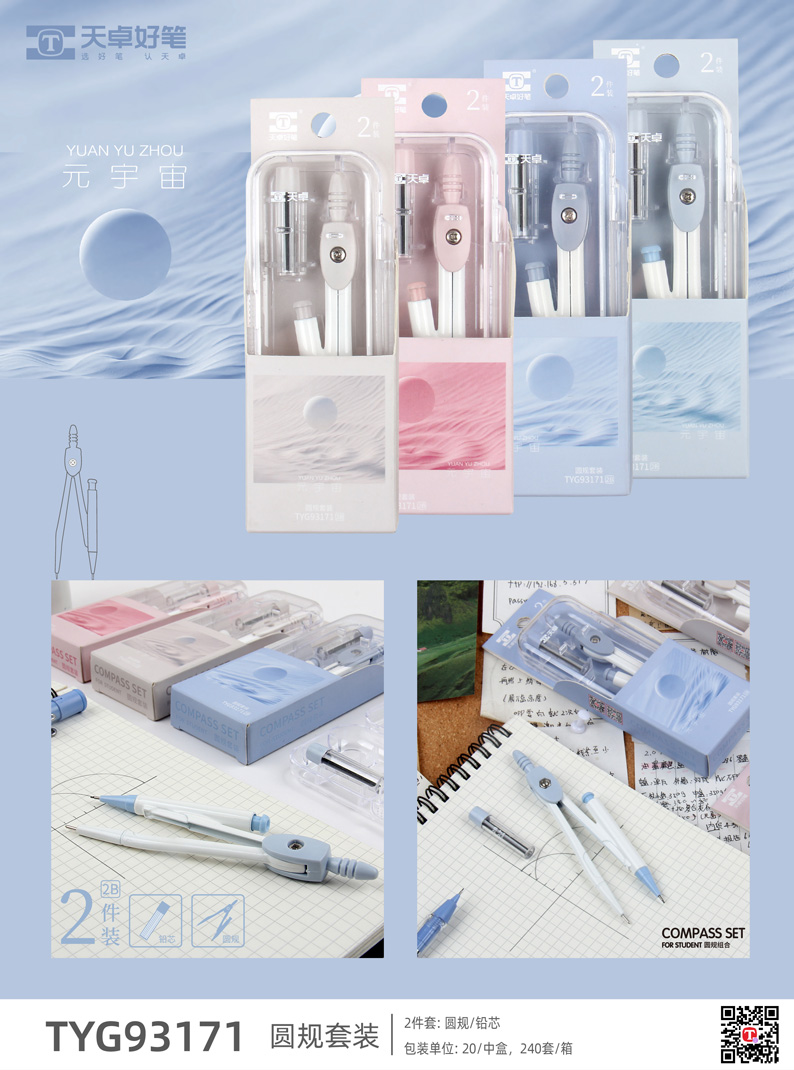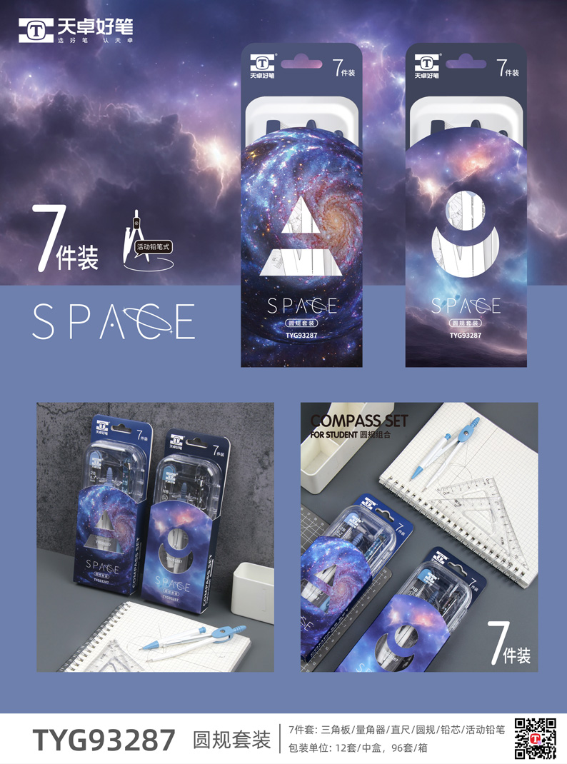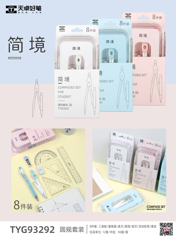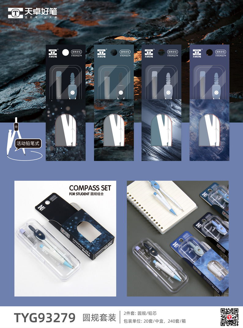 TYG93242天卓 古风系列 圆规中套装,圆规、三角尺、活动铅笔,中国古风主题图案
