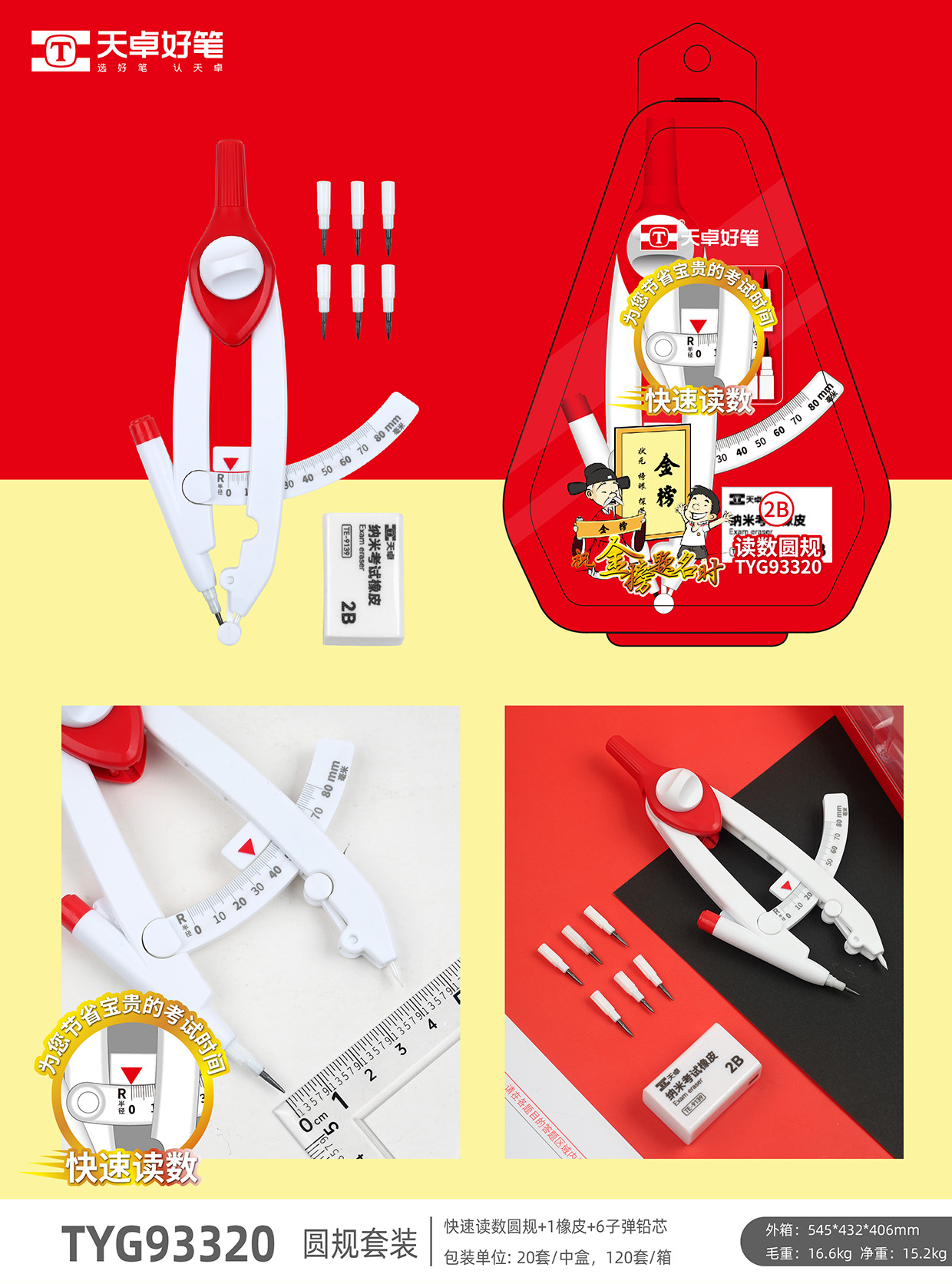 TYG93232天卓 蘑菇点点 系列 圆规大套装,圆规、三角尺、橡皮擦、活动铅笔、铅芯,蘑菇点点正版授权卡通